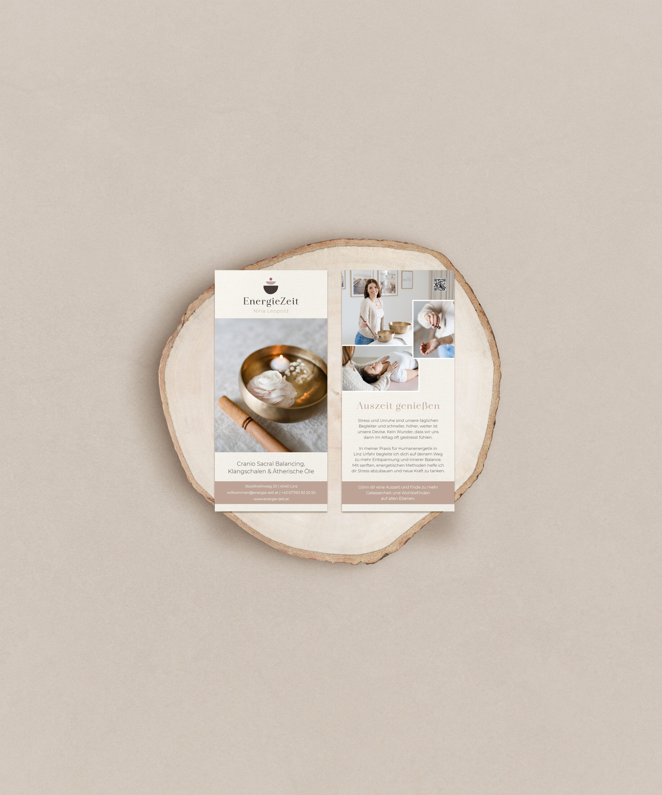 Für Nina durfte ich ein neues Logo gestalten. Sie ist aus ihrem alten Logo, welches schnell mal nebenbei gemacht wurde rausgewachsen und wollte sich somit neu präsentieren. Da sie viel mit Klangschalen arbeitet, war für mich sofort klar, dass ein Symbol der Klangschalen im Logo integriert werden muss. Eine Visitenkarte sowie ein neuer Flyer wurden passend zum neuen Logo designed.